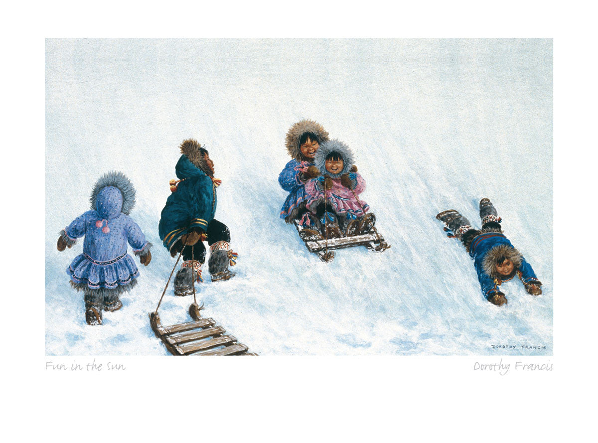 Dorothy Francis was born and raised in Saskatchewan , Canada. A childhood passion for drawing and painting developed into a full time career as an artist, whose work is now in demand throughout the world. She is best known for her portraits of Inuit People, whom she has studied extensively, to ensure that details in dress and artifacts are correct. Her compositions radiate a light-hearted happiness and often feature children.