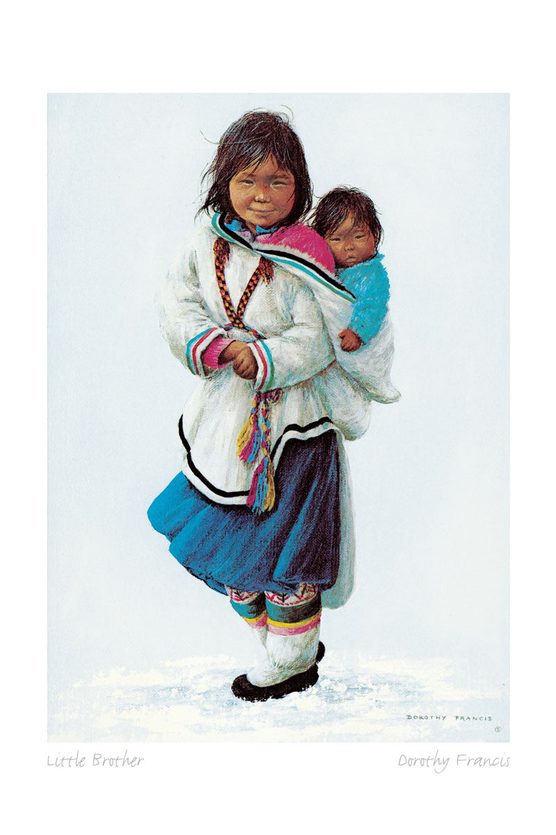 Dorothy Francis was born and raised in Saskatchewan , Canada. A childhood passion for drawing and painting developed into a full time career as an artist, whose work is now in demand throughout the world. She is best known for her portraits of Inuit People, whom she has studied extensively, to ensure that details in dress and artifacts are correct. Her compositions radiate a light-hearted happiness and often feature children.