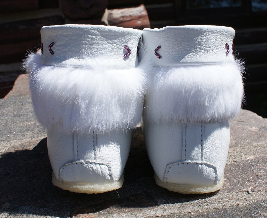 The Mini Mukluk is a shorter version of the traditional knee-high mukluk, but with the same great comfort and style. The Mini Mukluk stand 5.5" high, above the ankle about mid-calf. Comes with a thick rubber sole suitable for outdoor wear, beading, rabbit fur, Leather and fleece lining. Available in 2 colours of Leather and 10 colours of Suede, Ladies sizes 4-11.