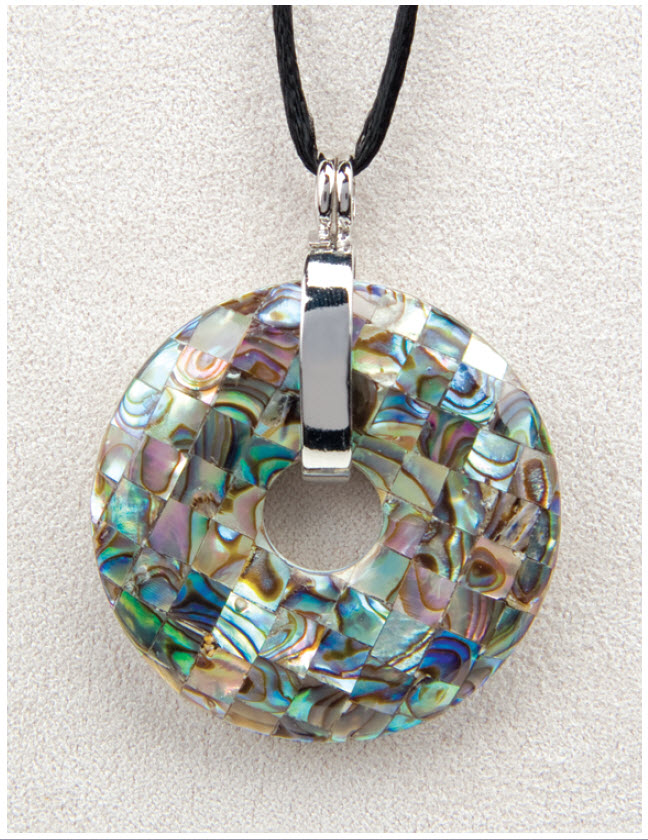 Pendant has a diameter of approximately 1.25", on a 30" adjustable satin cord
