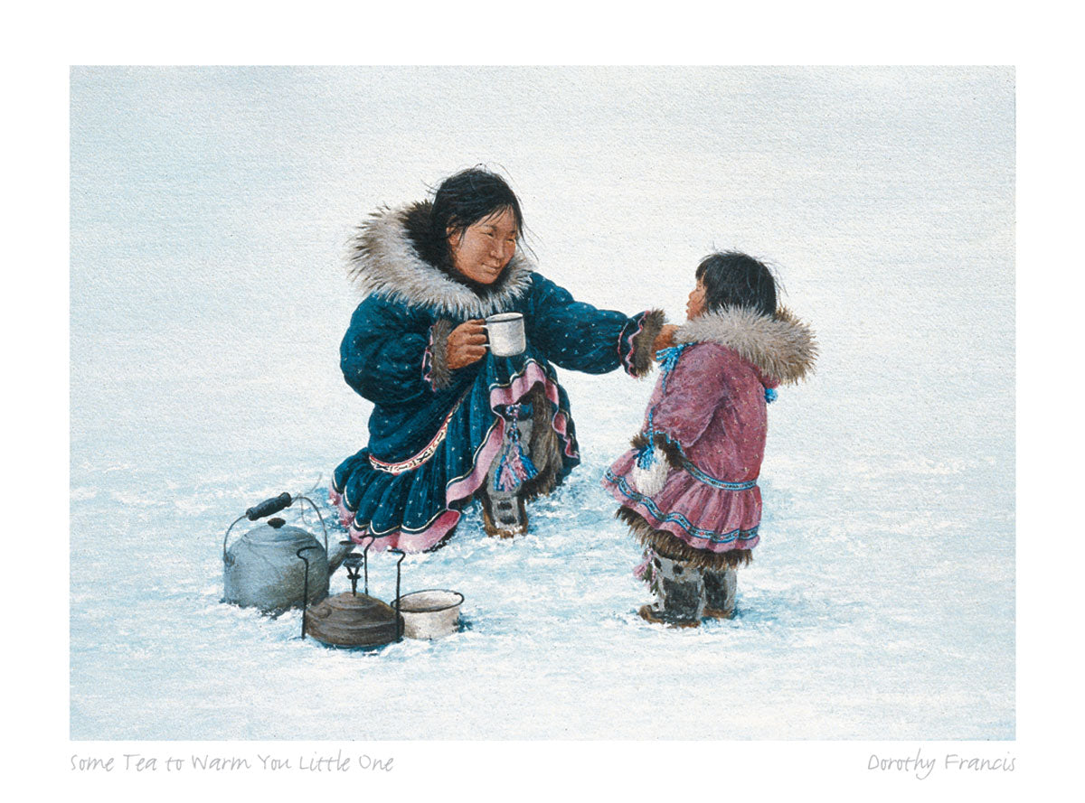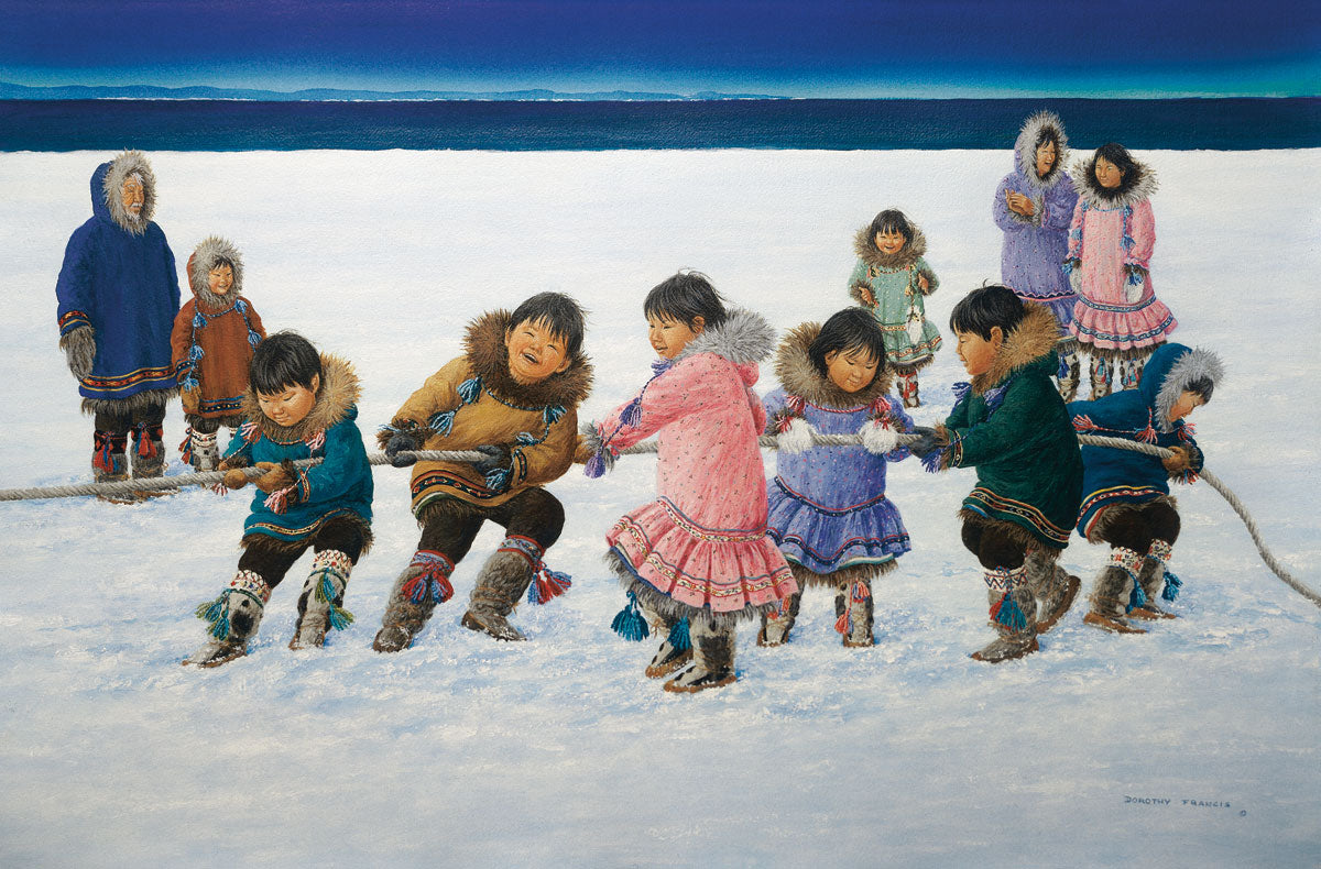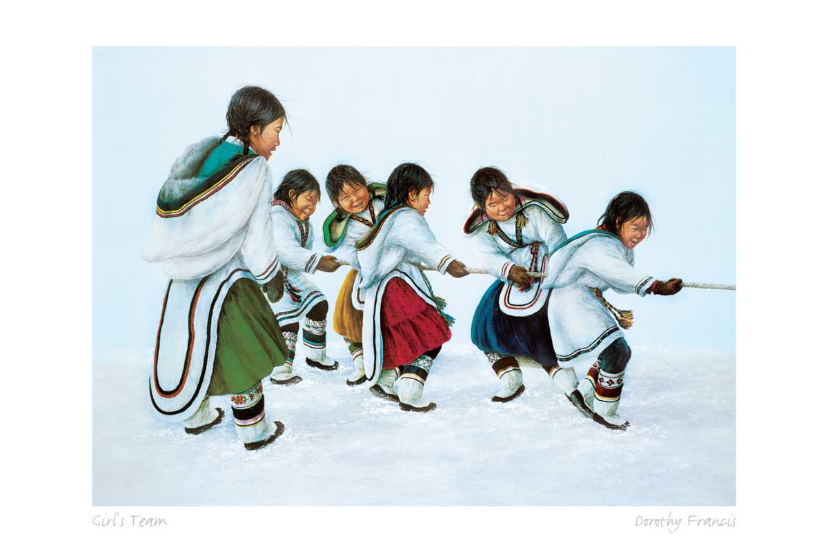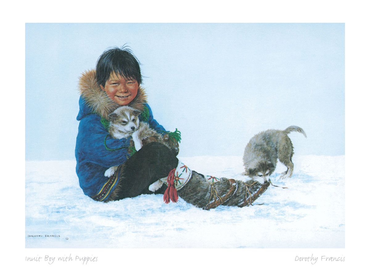 Francis moved to North Vancouver in 1952, where she attended the Vancouver Art School. She works mostly with acrylics on canvas or hardboard, using many washes to achieve the brilliant colour which characerizes her paintings. She is best known for her portraits of the Inuit people, whom she has studied extensively, to ensure that details in dress and artifacts are correct. Her compositions radiate a light-hearted happiness and often feature children.